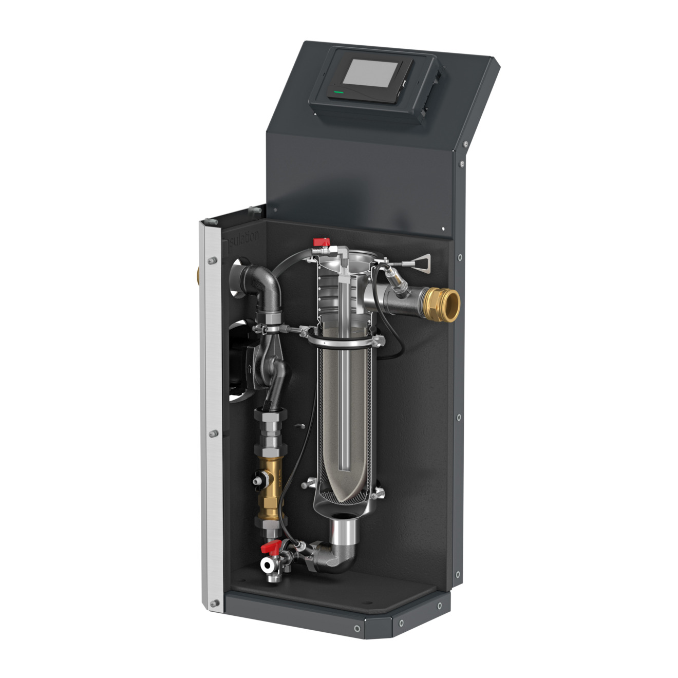 Det innebär att smuts och magnetit fångas upp genom en kombination av en filterpåse och magnetisk filtrering.
