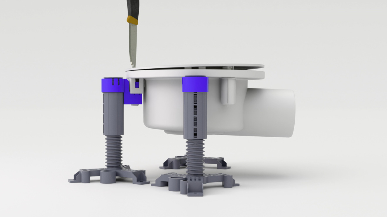 Purus Njord 75 sida och Purus Hild 75 botten är utrustade med en integrerad förhöjningsring som gör det möjligt att efterjustera golvbrunnen. De sätts i lägsta läget vid ingjutning, både i höjdled (upp till 23 mm) och i vinkel (upp till 8°), efter det att de gjutits fast.