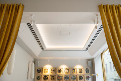 – Gällande inredningen hade hyresgästen en idé hämtad från New York, med ett undertak som i princip inte hade några installationer. Att förverkliga den idén, samtidigt som tillräckligt med luft och kyla ska tillföras lokalen dragfritt och med låga ljudnivåer, krävde några kreativa idéer. Det resulterade i sammansatta spaltdon som bildar en ”spegel” i undertaken. I vissa spaltdon blåses det in tilluft och i vissa cirkuleras luften via kanalanslutna fläktluftkylare, som är monterade ovan undertak, säger Annette Jonsson.